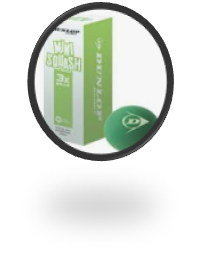 DUNLOP INTRO BALL: Excellent transition from mini squash balls. This blue dot enables a player to hit the squash court sprinting. It is the most bouncy of the Dunlop ball family, designed to assist players master technique and skills fast and simply. The Intro ball is 12% larger and 40% more bouncy than a typical pro ball. This ball looks similar to a green mini squash ball.
