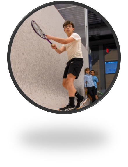Ball bounces and mini solo skills exercises will teach juniors the fundamentals of hitting and controlling the squash ball.