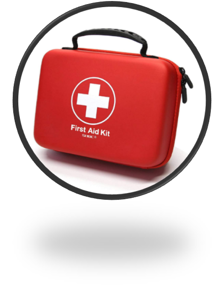 FIRST AID KIT AND AED: A fully equipped first aid kit needs to be at each venue. Self-adhesive black bandages and bleed stopping agents/wound seal powder are great for bleeding incidents. Band aids are often needed for scraps from falls on the court.